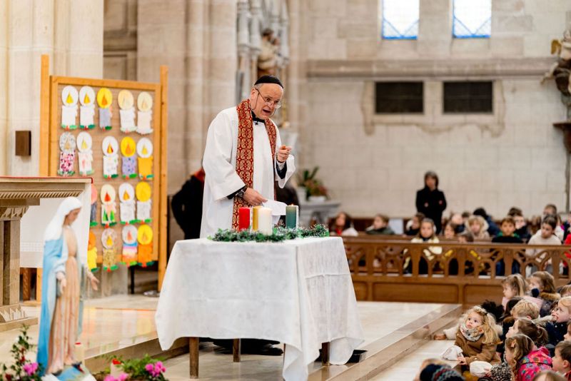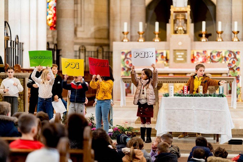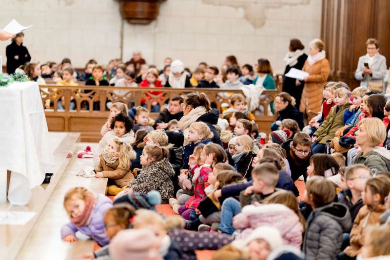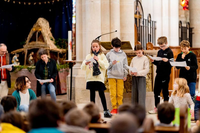 La célébration, animée par le Père Grégoire et Anne POTIRON pour les chants, a été rythmée par le conte des 4 bougies et les chants appris en classe.