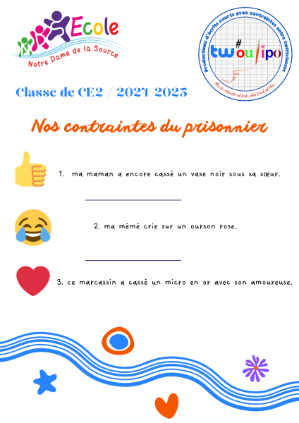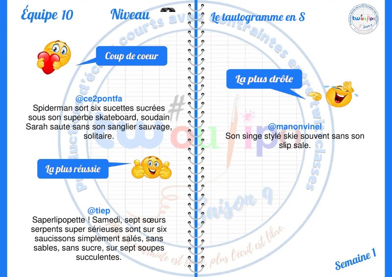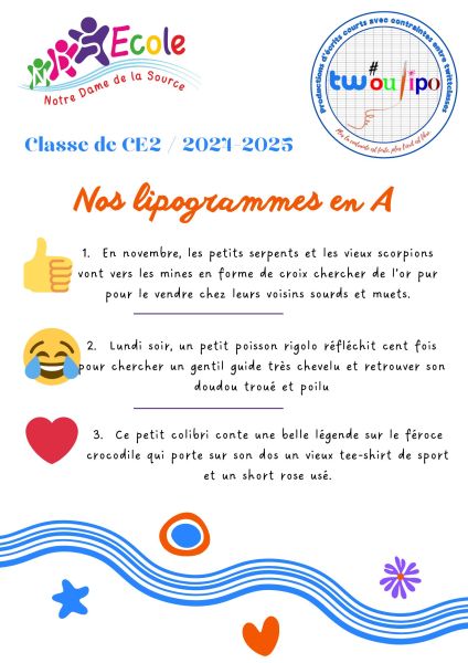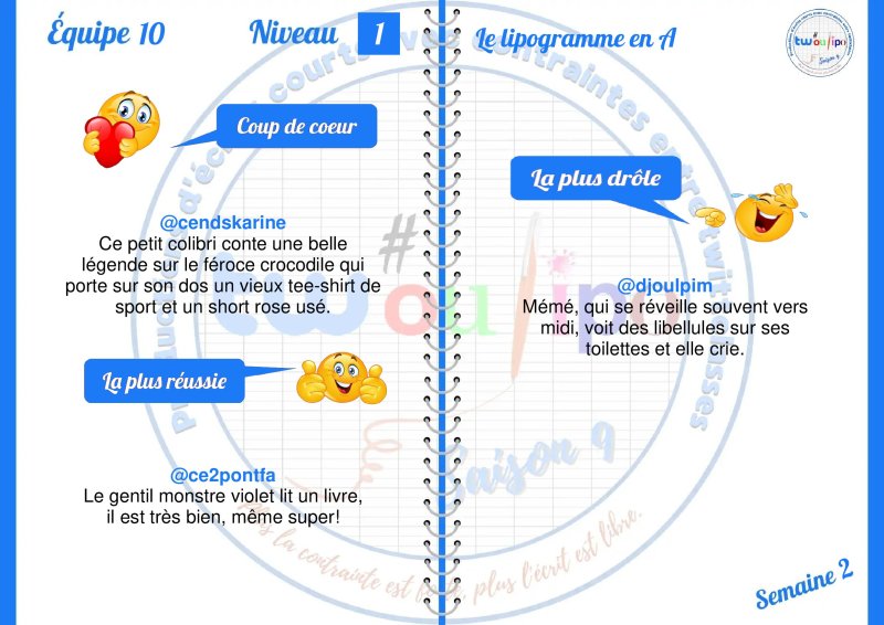 Vous pouvez retrouver leurs productions sur Mastodon via les balises #Twoulipo #EQ10 ou bien suivre le compte de la classe @cendskarine