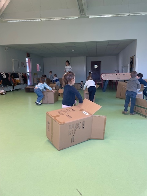 Durant la période 2, les élèves de TPS–PS ont participé à une séquence de motricité autour d’un matériel simple mais riche en possibilités : les cartons.