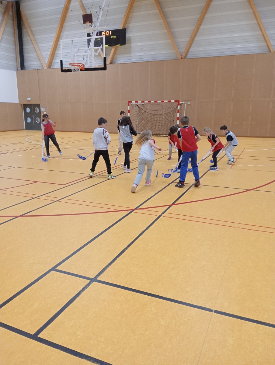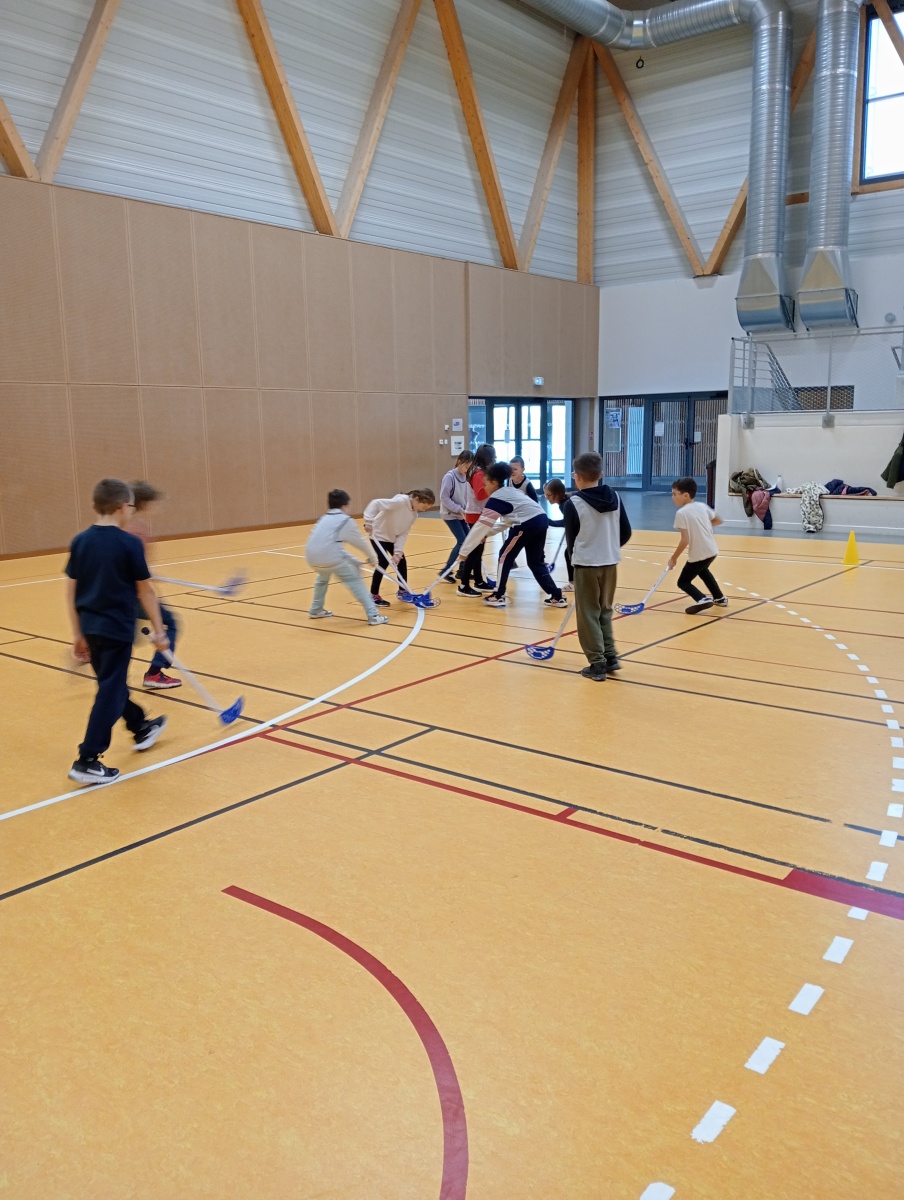 Lors de cette deuxième période de l’année, les CE2-CM1 se sont initiés au floorball.