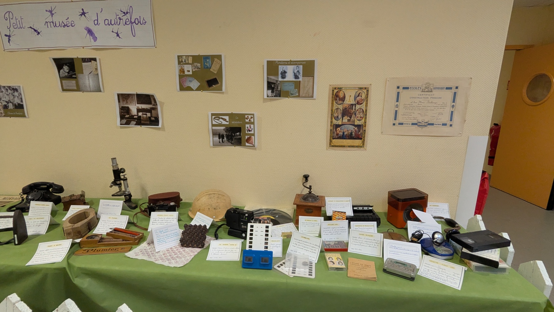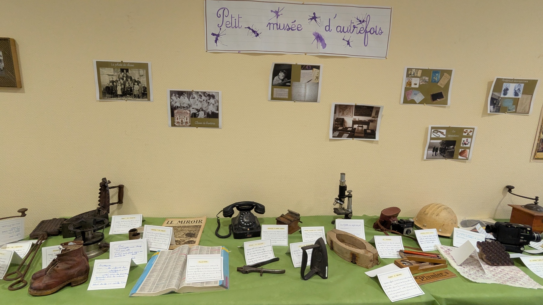 Durant la dernière période écoulée, le cycle 2 s’est intéressé au mode de vie d’autrefois. Ainsi, les élèves de CE1 des classes de Laurence et de Anne ont exposé dans le hall quelques objets anciens. Ils ont pu expliciter la fonctionnalité et les dates d’utilisation de chaque objet sur des petites cartes de présentation. Un voyage dans le temps qui leur a permis de créer un échange culturel et intergénérationnel.