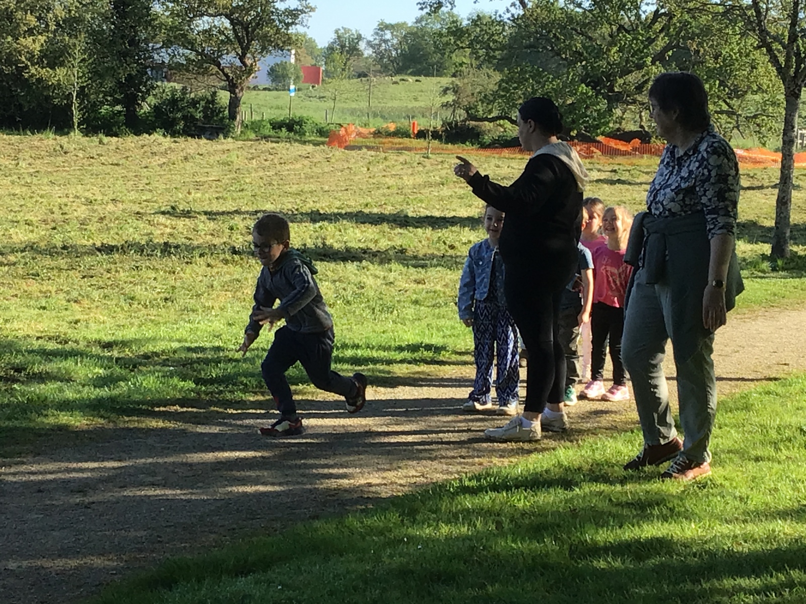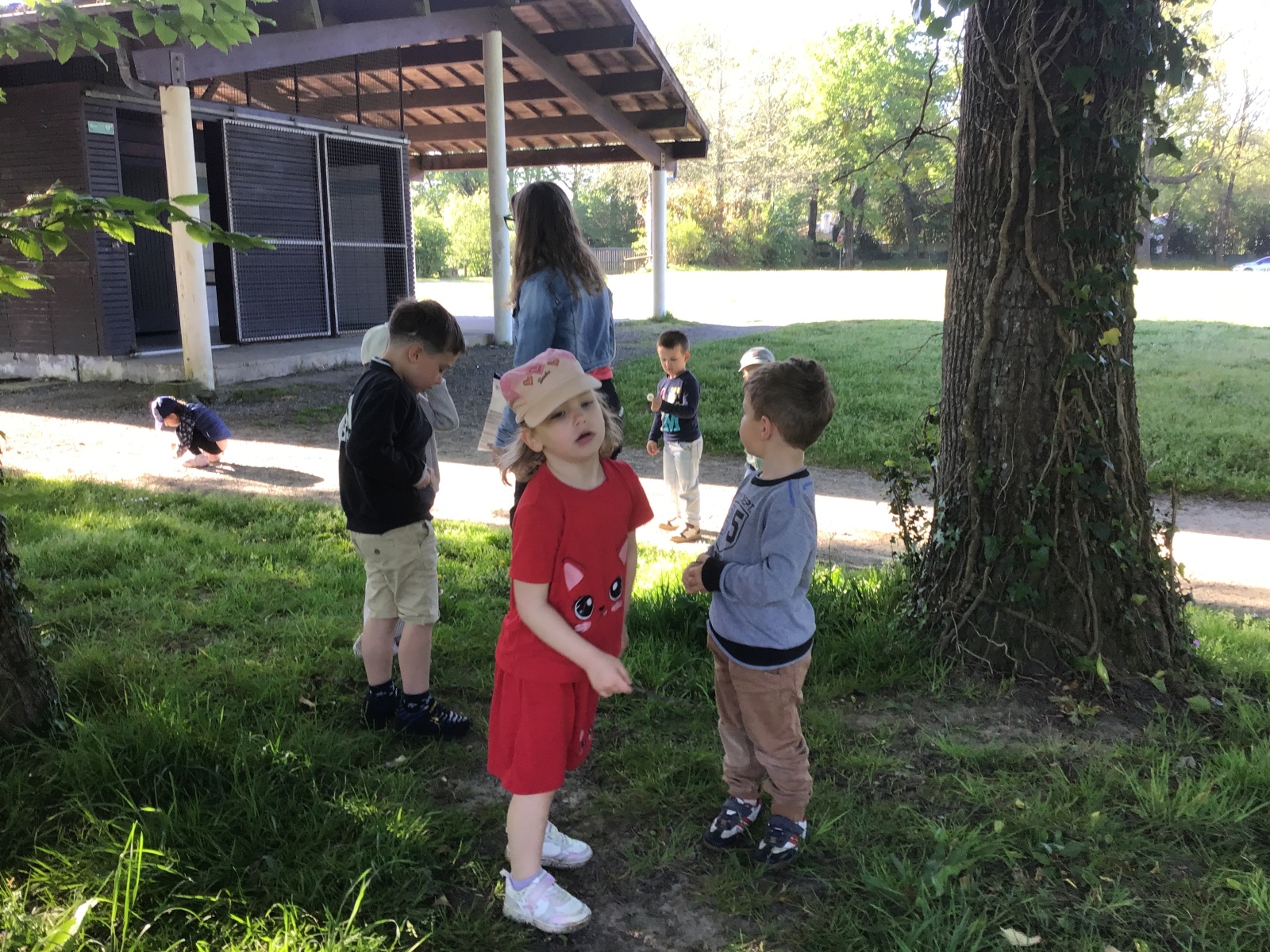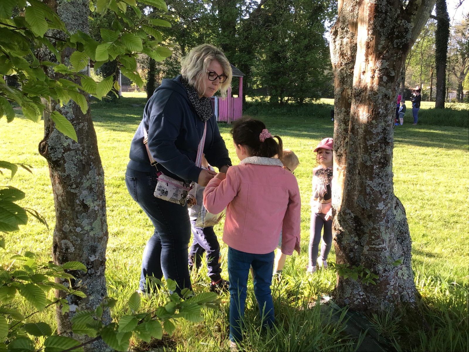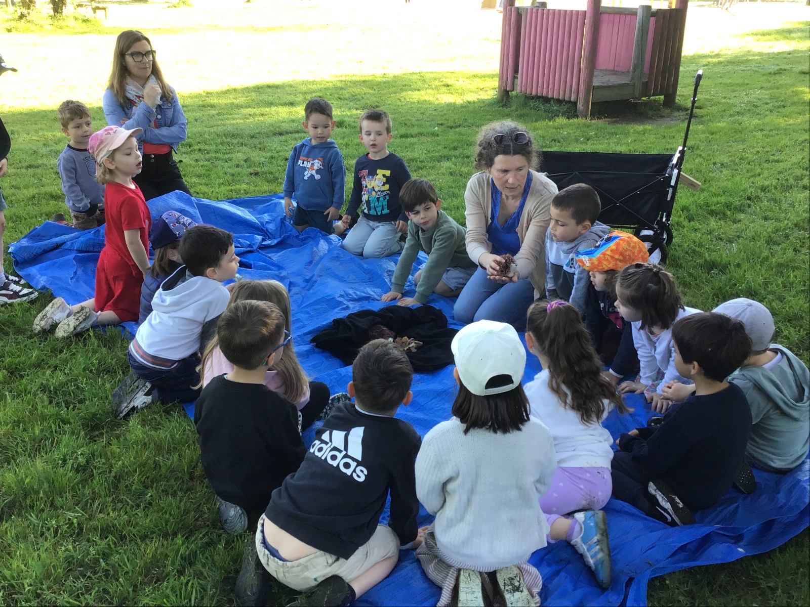 Au programme, une chasse au trésors d’éléments de la nature (chaque équipe est partie à la recherche d’un ver de terre, d’une fleur blanche, d’un insecte qui vole, d’une fourmi…), un parcours sportif, une écoute d’une histoire (la promenade du petit hérisson) et un jeu de kim, l’occasion d’apprendre à nommer et reconnaître la pâquerette et le pissenlit.