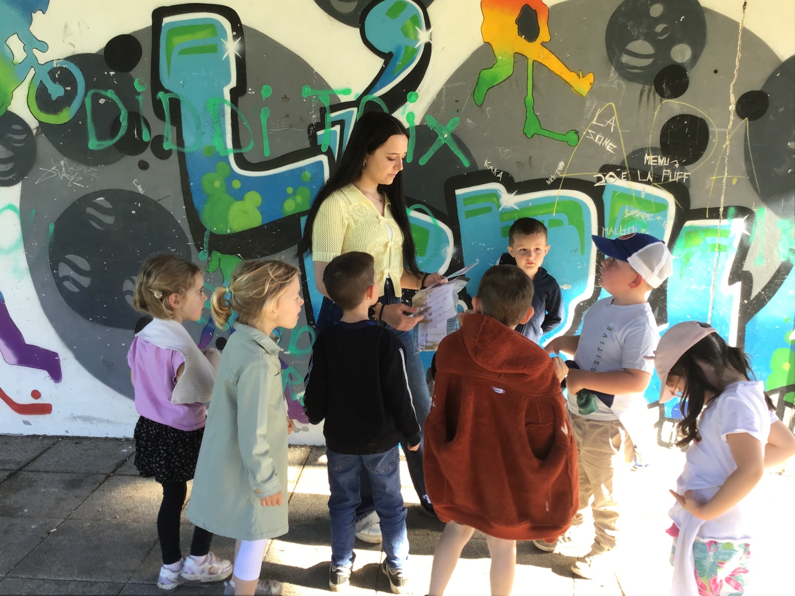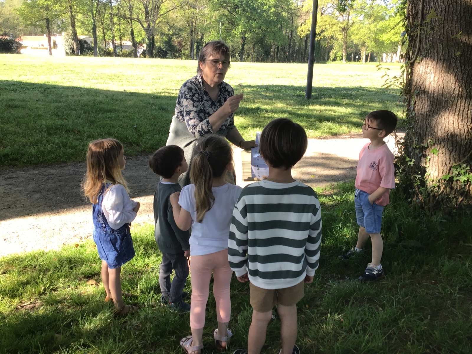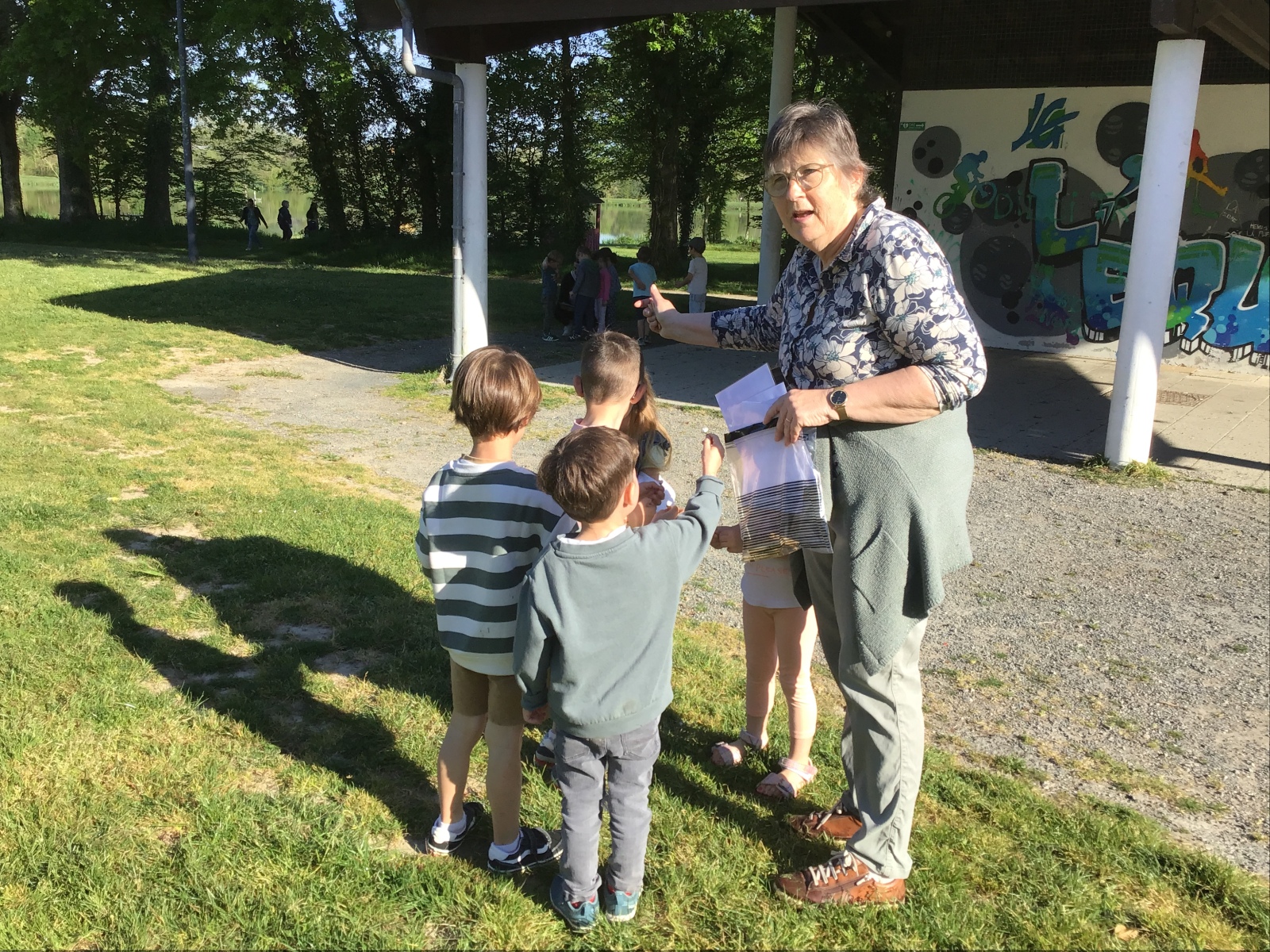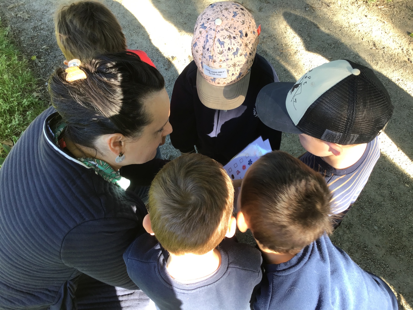 Au programme, une chasse au trésors d’éléments de la nature (chaque équipe est partie à la recherche d’un ver de terre, d’une fleur blanche, d’un insecte qui vole, d’une fourmi…), un parcours sportif, une écoute d’une histoire (la promenade du petit hérisson) et un jeu de kim, l’occasion d’apprendre à nommer et reconnaître la pâquerette et le pissenlit.