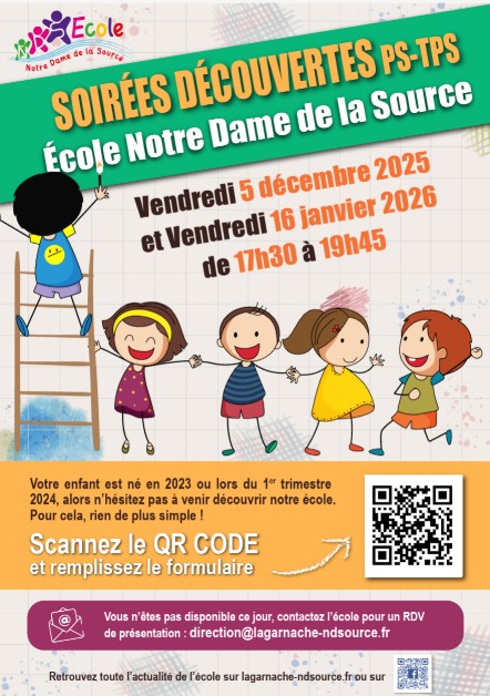 Concernant les TPS, l’école Notre-Dame de la Source accueille les enfants nés entre le 01 janvier et le 31 mars de l’année de leur 2 ans en priorité et en fonction des places disponibles, soit en septembre ou au retour des vacances d’hiver. La rentrée des TPS, après les vacances d’hiver, se réalise de manière échelonnée en fonction du nombre d’enfants pour leur offrir un accueil personnalisé.